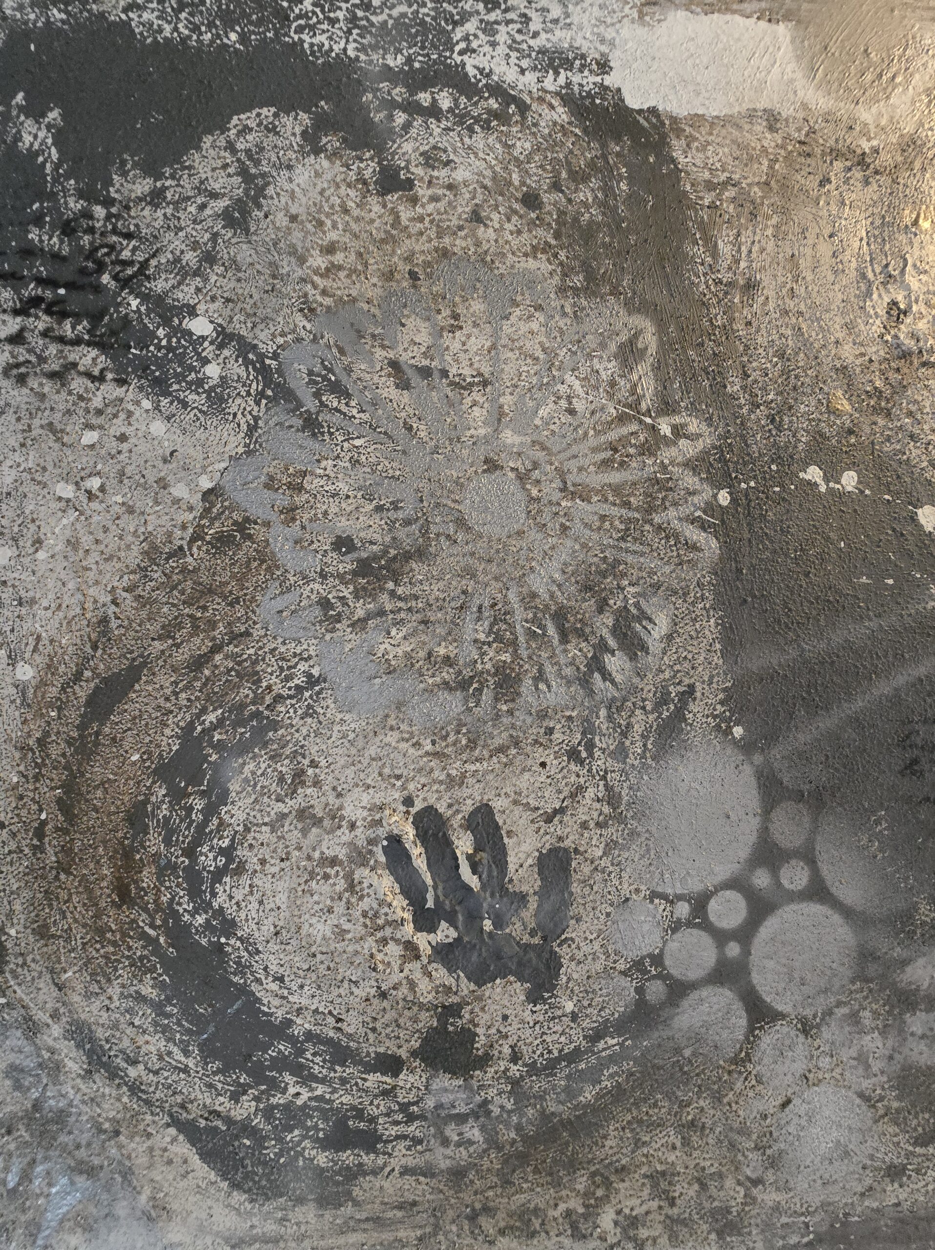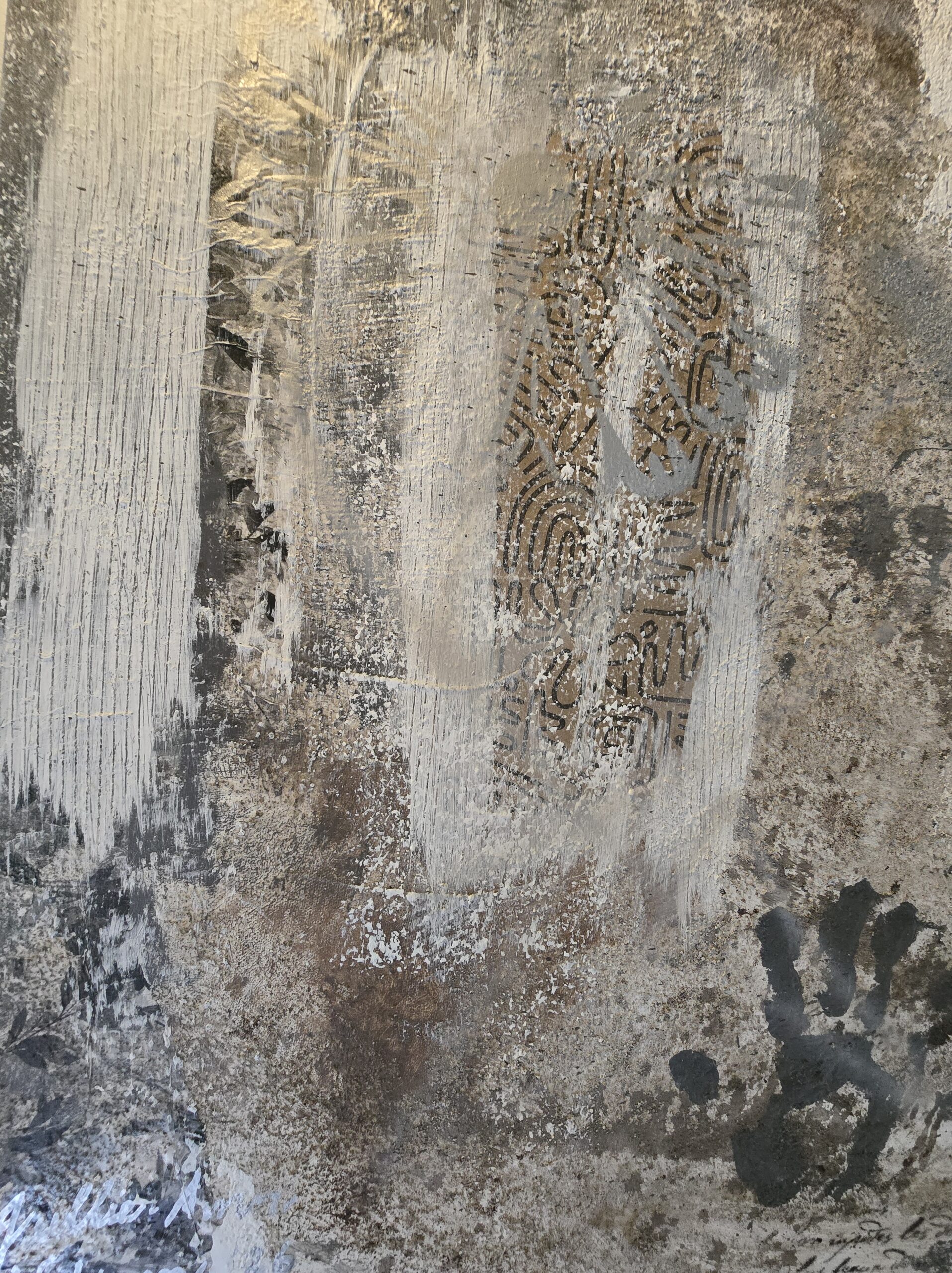 Medium: Mixed media (acrylic, handmade paper pulp, ground coffee)