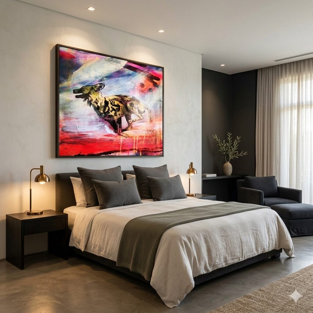 A refined, gallery-inspired suite with deeper tones, ideal for guests seeking privacy, rest, and a more dramatic mood.